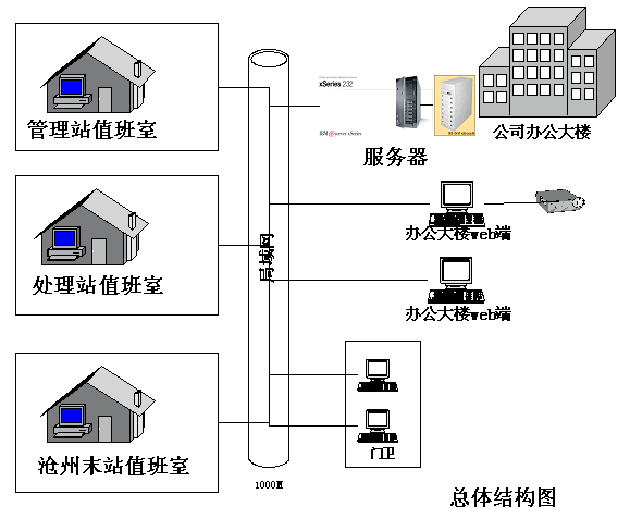 * 在公司办公楼、管理站、沧州末站按要求设置监控摄像头,并通过Internet传输图象数据。